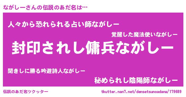 | 意味不明あだ名 | 『住所不定無職ながしー(68歳)』 |