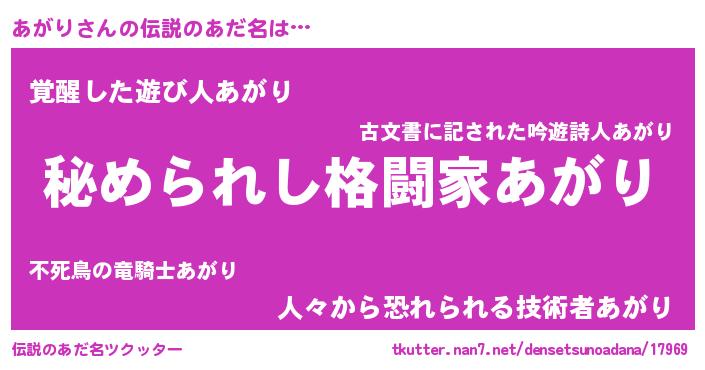 | ファンタジー風あだ名 | 『ヴァルアガーナ』『エターナルアガリー』 |
