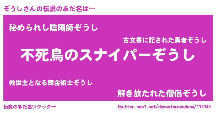| ファンタジー風あだ名 | 『ヴァルゾウーナ』『ゼゾウトゥ』 |