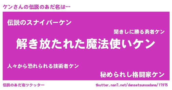 | 胡散臭い通販商品みたいなあだ名 | 『伝統あるサプリメント…その名も「ケン」』 |