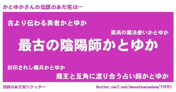 | 意味不明あだ名 | 『かとゆかフォーエバー』『自称かとゆか』 |