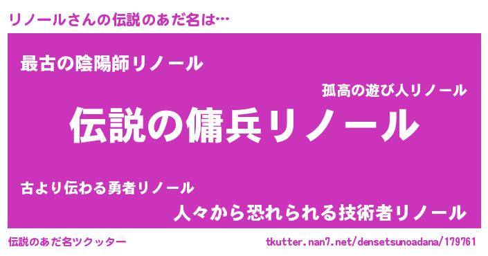 | 意味不明あだ名 | 『自称リノール』『なめこ科リノール属』 |