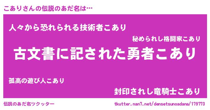 | ヘコむあだ名 | 『こあり(震え声)』『こあにー』 |