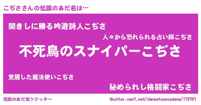 | 女子向けラノベタイトル風あだ名 | 『闇のこぢさ』『こぢさ姫と円卓の騎士』 |