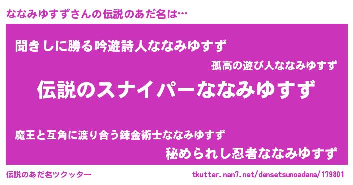 | ヘコむあだ名 | 『ななっふぃ~』『ななみゆすず(小並感)』 |