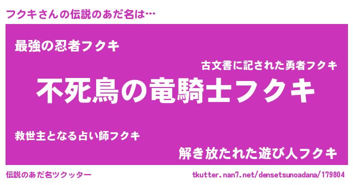 | 自動車の名前っぽいあだ名 | 『フェフーク』『フクティマ』 |