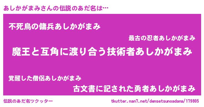 | 胡散臭い通販商品みたいなあだ名 | 『テレビで話題の高麗人参…その名も「あしかがまみ」』 |