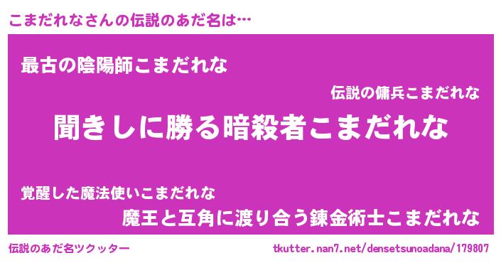 | 胡散臭い通販商品みたいなあだ名 | 『絶対に幸福をもたらす健康食品…その名も「こまだれな」』 |
