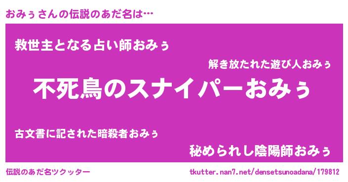 | 胡散臭い通販商品みたいなあだ名 | 『モテモテ間違いなし霊験あらたかなお札…その名も「おみぅ」』 |