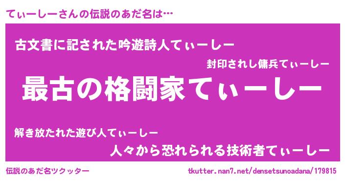 | 意味不明あだ名 | 『てぃーしーフォーエバー』 |