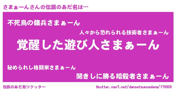 | 男性向けラノベタイトル風あだ名 | 『Re:さまぁーんから始める異世界生活』 |