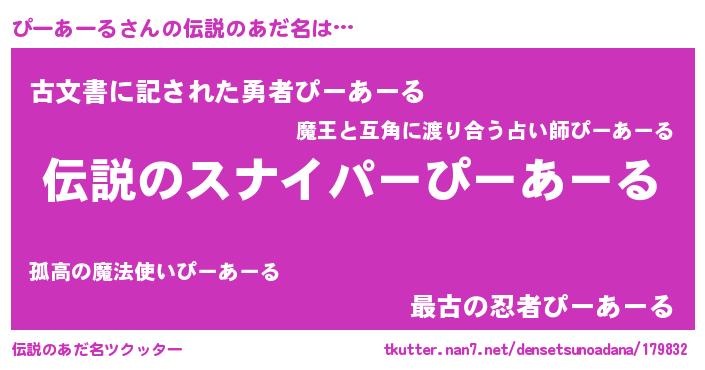 | 胡散臭い通販商品みたいなあだ名 | 『必ず成功する霊験あらたかなお札…その名も「ぴーあーる」』 |