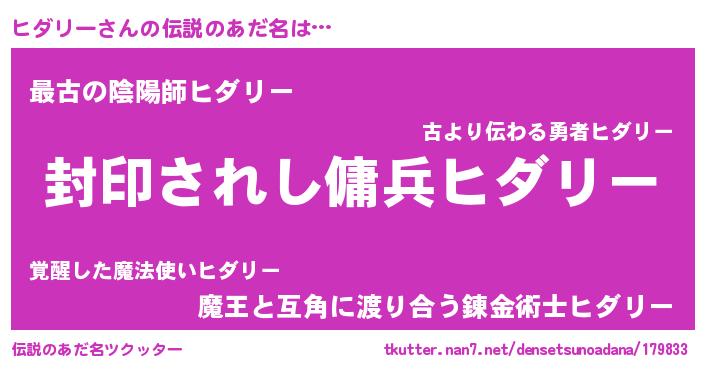 | ヒーロー風カッコイイあだ名 | 『スーパーヒダリー』『仮面ヒダダー』 |