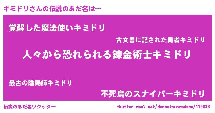 | ヒーロー風カッコイイあだ名 | 『仮面キミダー』『サイバー戦士キミドリ』 |