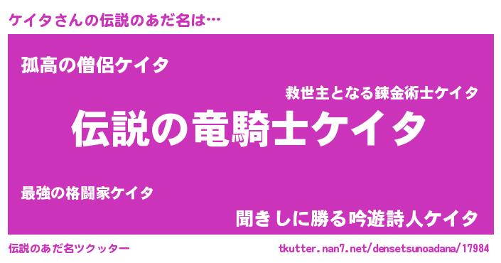 | 男性向けラノベタイトル風あだ名 | 『緋弾のケイタ』『ケイタの憂鬱』 |
