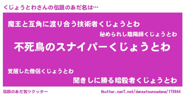 | 意味不明あだ名 | 『住所不定無職くじょうとわ(71歳)』 |