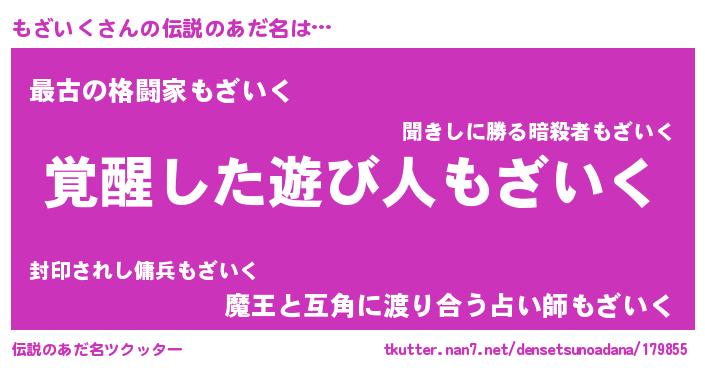 | ヒーロー風カッコイイあだ名 | 『天弓騎士モザ』『ウルトラもざいくマン』 |