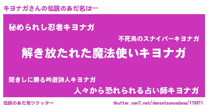 | ヒーロー風カッコイイあだ名 | 『幻影騎士キヨ』『ウルトラキヨナガマン』 |