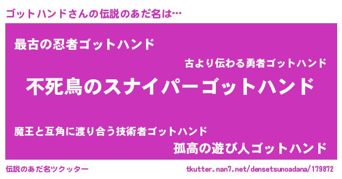 | ヒーロー風カッコイイあだ名 | 『スーパーゴットハンド』『暗黒騎士ゴッ』 |