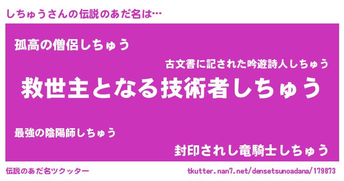| ヒーロー風カッコイイあだ名 | 『天空の使者しちゅう』『暗黒騎士シチ』 |
