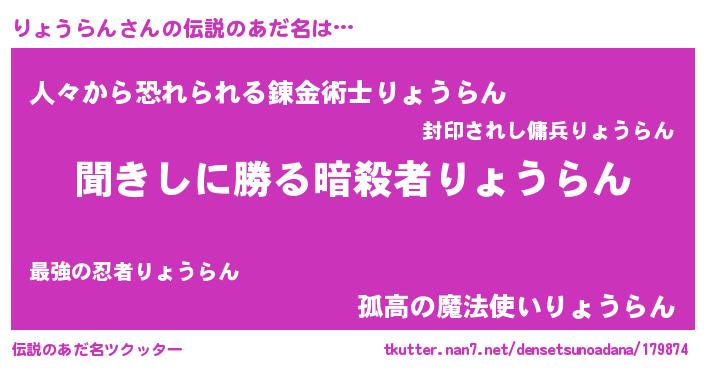 | 意味不明あだ名 | 『自称りょうらん』『永久保存りょうらん』 |