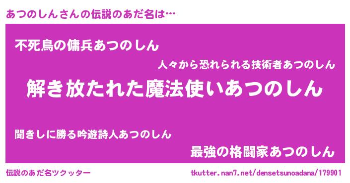 | 意味不明あだ名 | 『とにかく怪しいあつのしん』 |