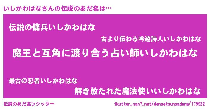 | 女子向けラノベタイトル風あだ名 | 『いしかわはな恋絵巻』 |