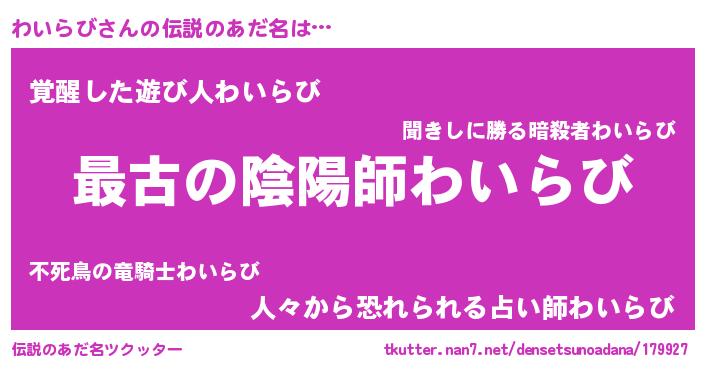 | 意味不明あだ名 | 『住所不定無職わいらび(95歳)』 |