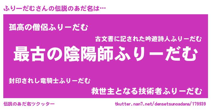 | 肩書あだ名 | 『ふりーだむ国家主席』『ふりーだむ閣下』 |