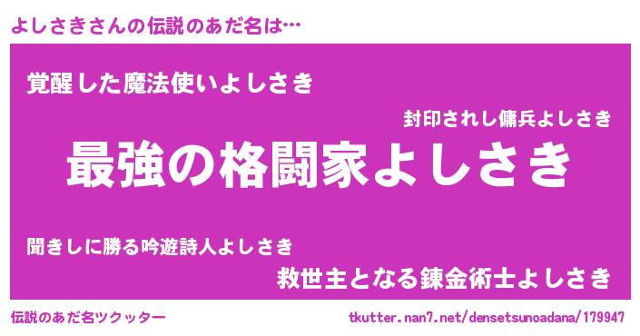 | ファンタジー風あだ名 | 『ゼヨシトゥ』『エターナルヨシサキー』 |