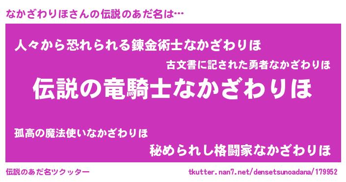 | 女子向けラノベタイトル風あだ名 | 『(仮)なかざわりほのやんごとなき事情』 |