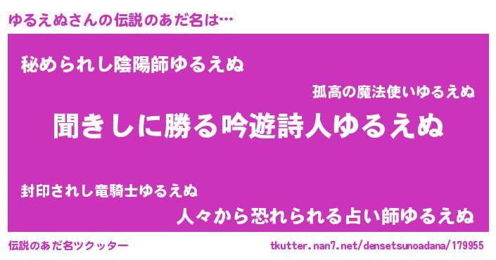 | 意味不明あだ名 | 『永久保存ゆるえぬ』『自称ゆるえぬ』 |