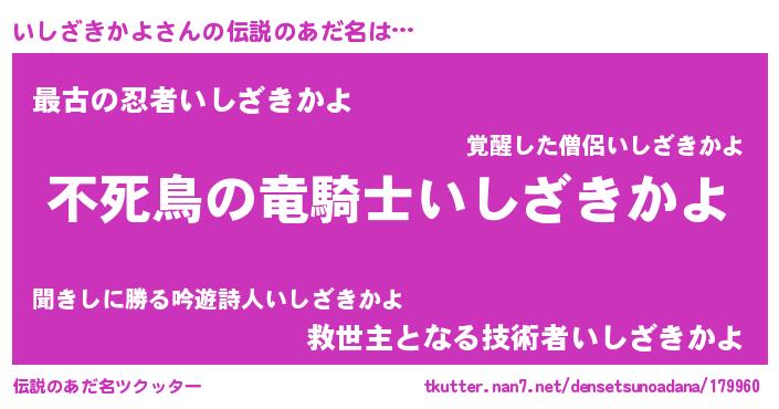 | ヒーロー風カッコイイあだ名 | 『スーパーイシザキカヨ』『仮面イシダー』 |
