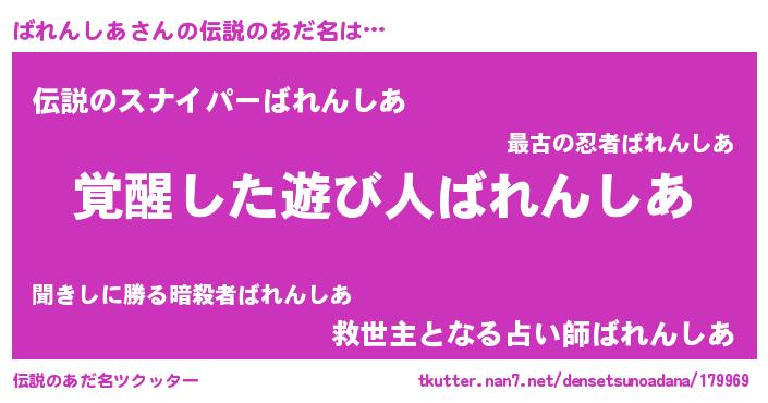 | 男性向けラノベタイトル風あだ名 | 『うちのばれんしあが世界を掌握している!』 |