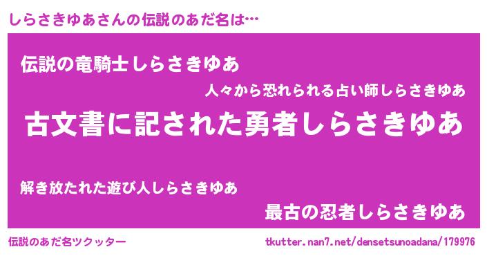 | 意味不明あだ名 | 『永久保存しらさきゆあ』 |