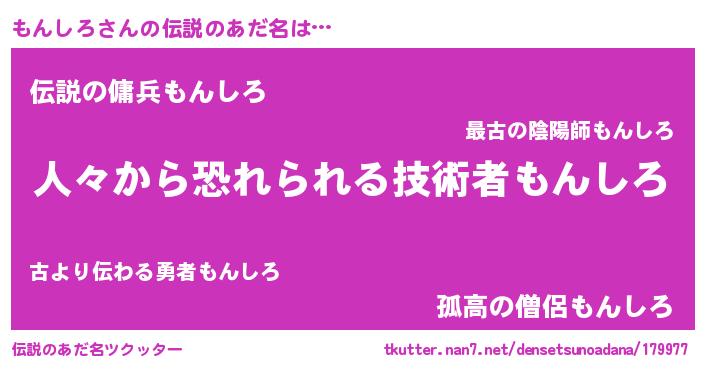 | ヒーロー風カッコイイあだ名 | 『正義の使者もんしろ』『銀牙騎士モン』 |