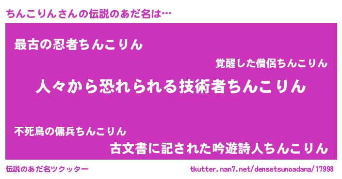 | 胡散臭い通販商品みたいなあだ名 | 『100人中100人が認めたマグネット磁石…その名も「ちんこりん」』 |