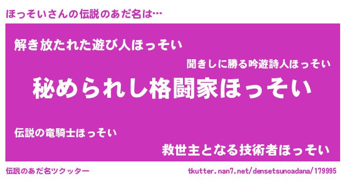 | ファンタジー風あだ名 | 『ゼホットゥ』『エターナルホッソイー』 |