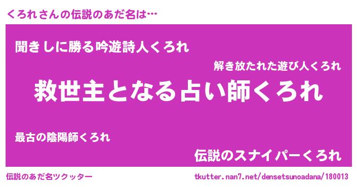 | 女子向けラノベタイトル風あだ名 | 『死神くろれの再婚』『くろれの契約王妃』 |
