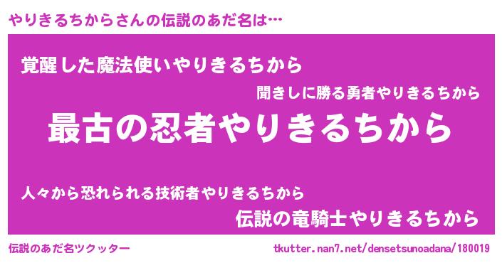 | 意味不明あだ名 | 『住所不定無職やりきるちから(43歳)』 |