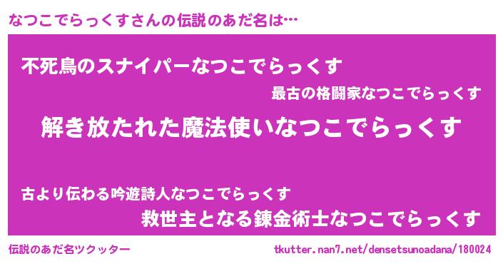| 欧米人風あだ名 | 『ウサインなつこでらっくす』 |