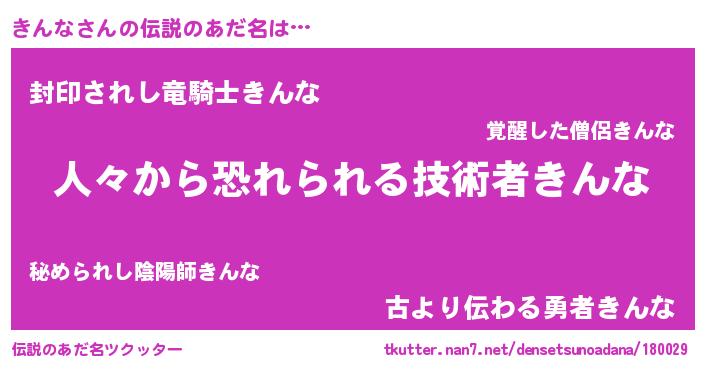 | ヒーロー風カッコイイあだ名 | 『友情の使者きんな』『仮面キンダー』 |