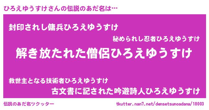 | 意味不明あだ名 | 『とにかく怪しいひろえゆうすけ』 |