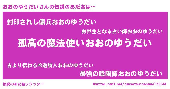 | 肩書あだ名 | 『おおのゆうだい大佐』 |