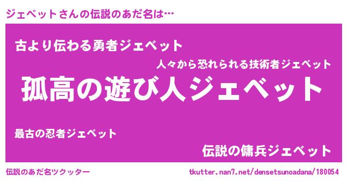 | 意味不明あだ名 | 『住所不定無職ジェベット(91歳)』 |