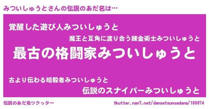| ファンタジー風あだ名 | 『エターナルミツイシュウトー』 |