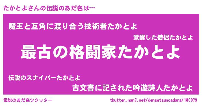 | 男性向けラノベタイトル風あだ名 | 『転生したらたかとよだった件』 |