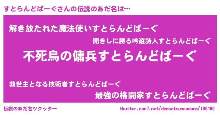 | 意味不明あだ名 | 『自称すとらんどばーぐ』 |