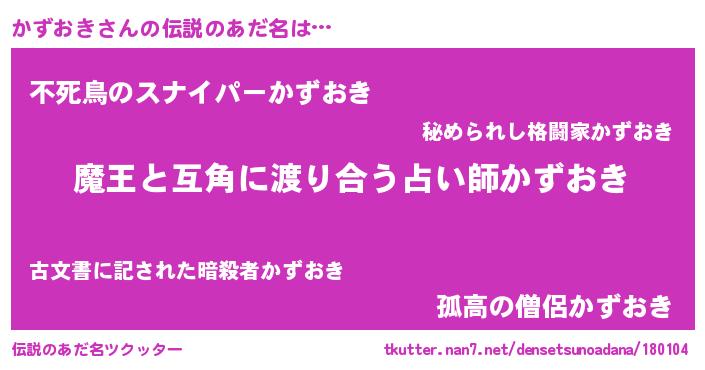 | ヒーロー風カッコイイあだ名 | 『愛の使者かずおき』『スーパーカズオキ』 |