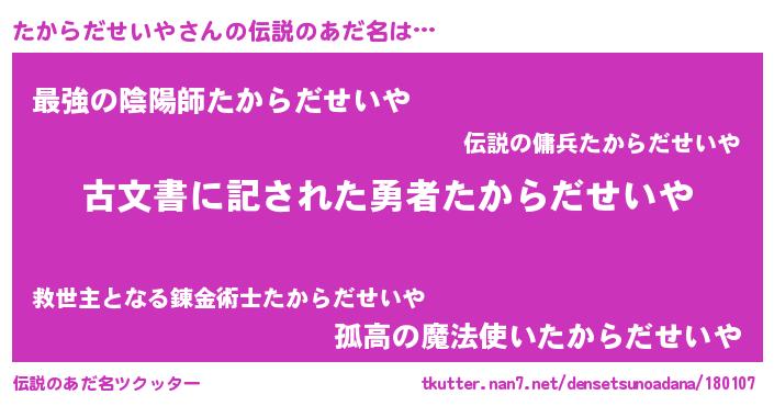 | ヒーロー風カッコイイあだ名 | 『ネオタカラダセイヤ』『仮面タカダー』 |